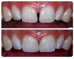 Some people get braces, which move the teeth together. Often, no matter where the diastema is, you must wear a full set of braces - on both your upper and lower teeth. That's because moving any teeth affects your entire mouth.If your lateral incisors are too small, your dentist may suggest widening them using crowns, veneers or bonding.If you have a space because you are missing teeth, you might need more extensive dental repair. This might include dental implants, a bridge or a partial denture.